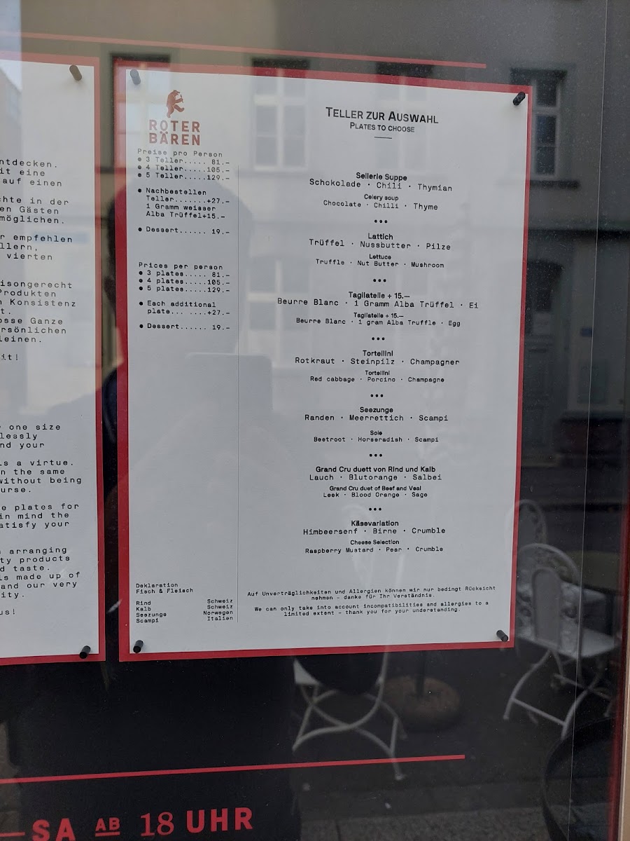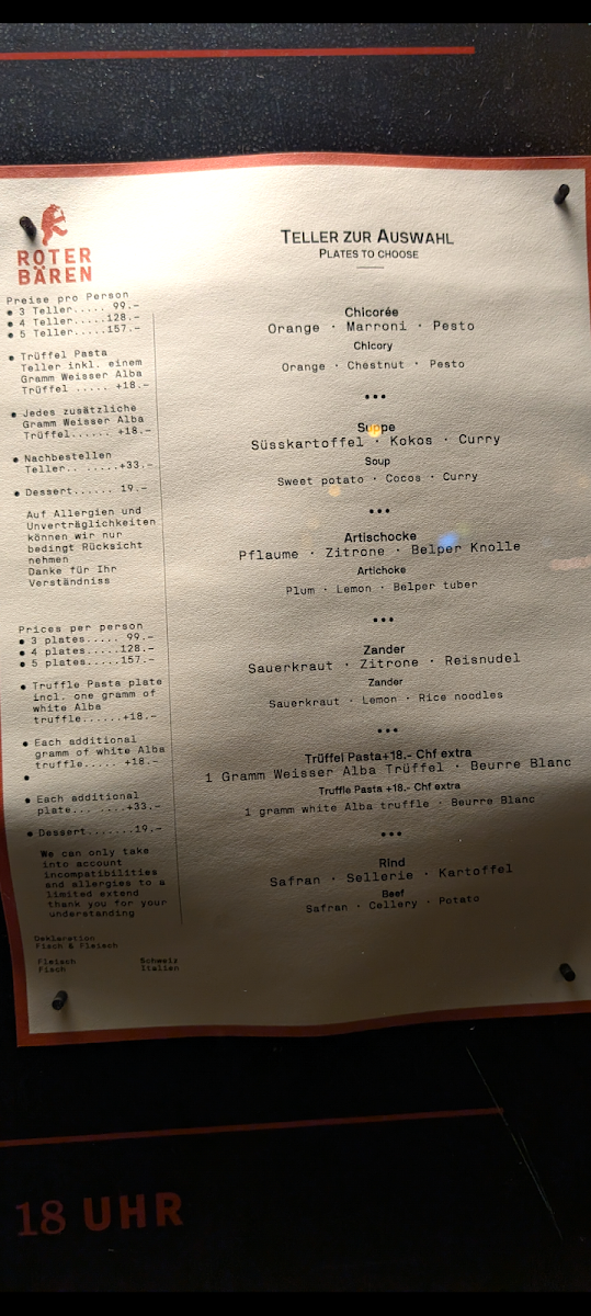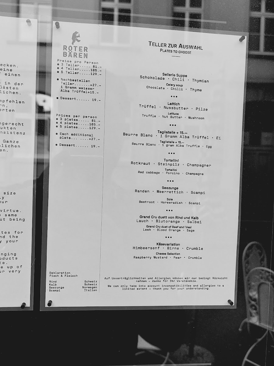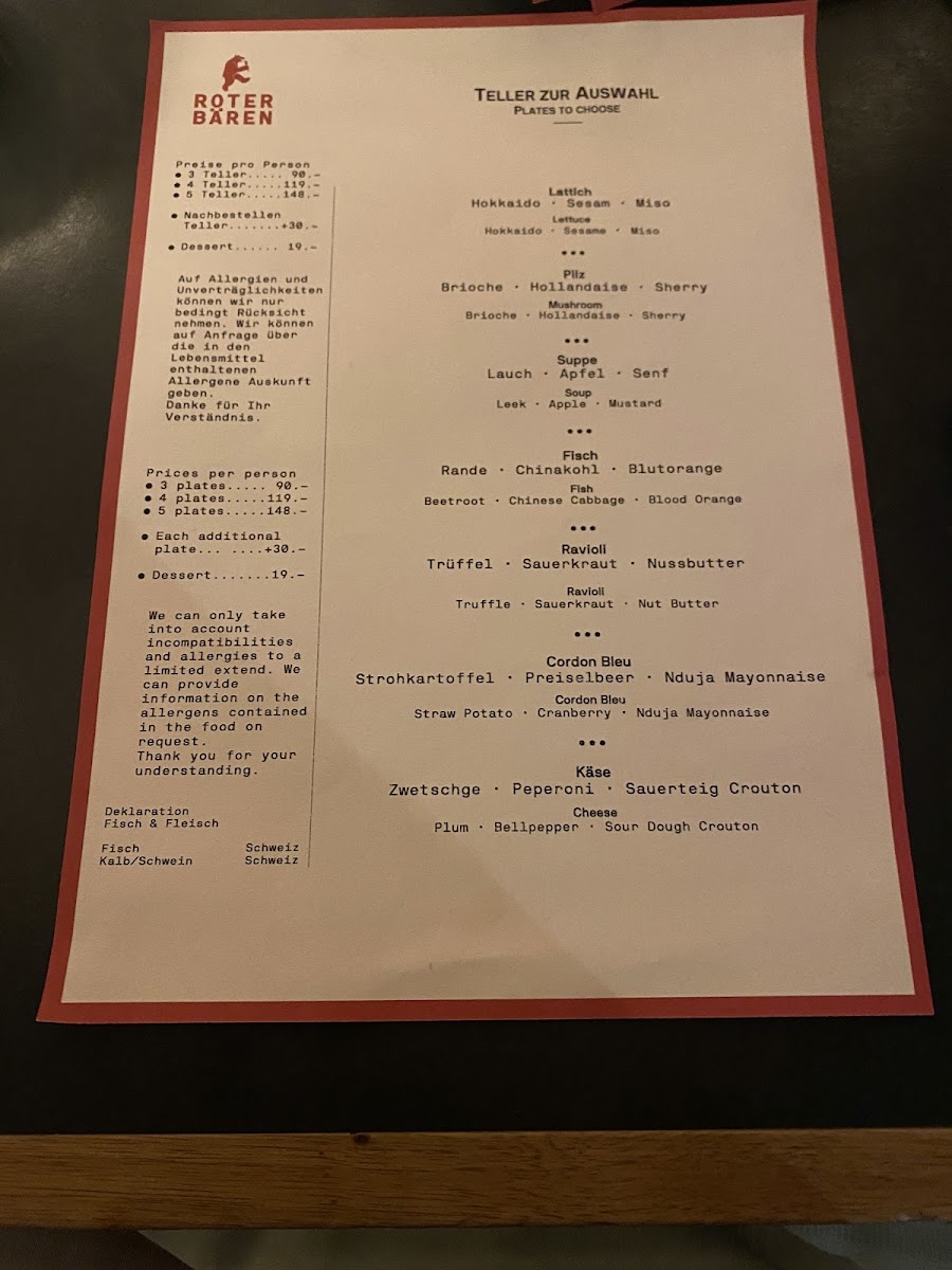 The overall quality of service, although occasionally slow, reflects the restaurant's dedication to a refined dining experience. Roter Bären is not just a meal; it's a gastronomic adventure waiting to unfold.